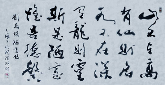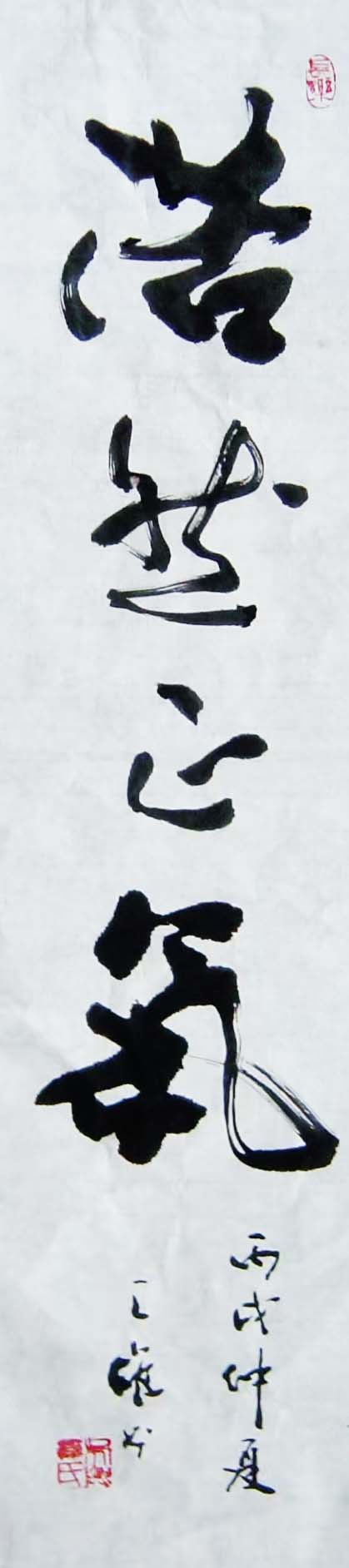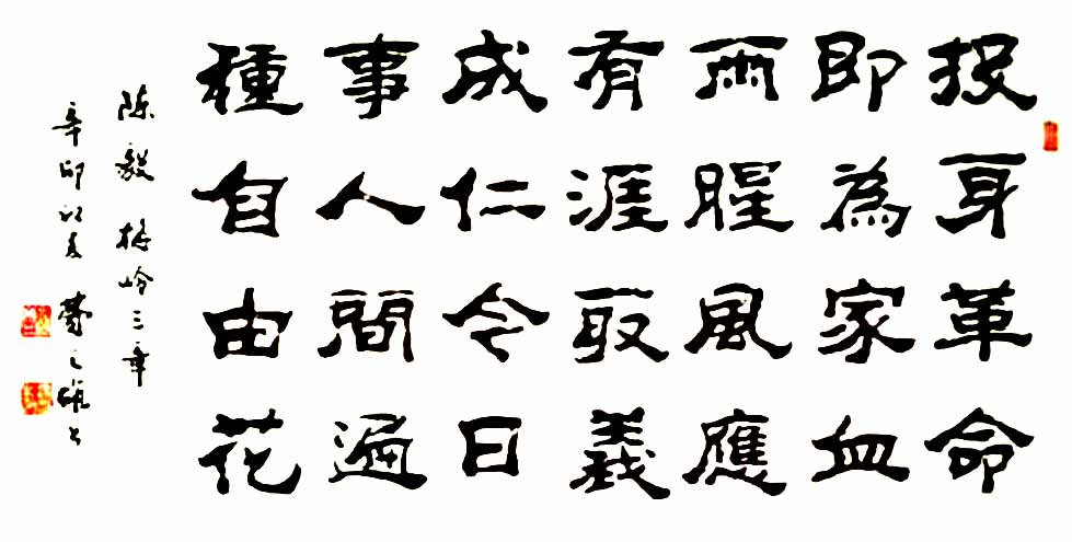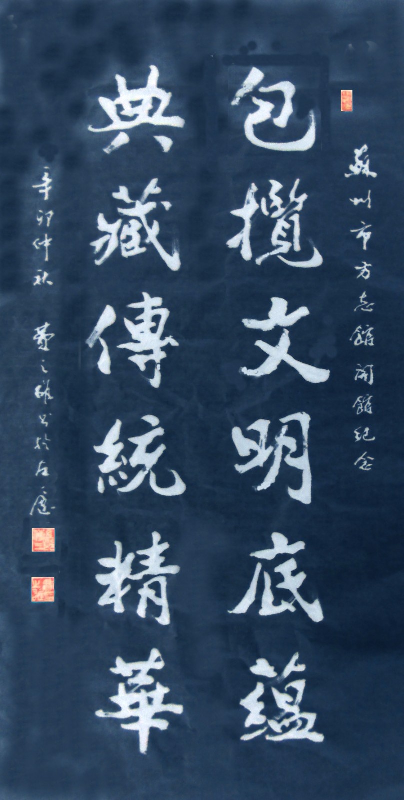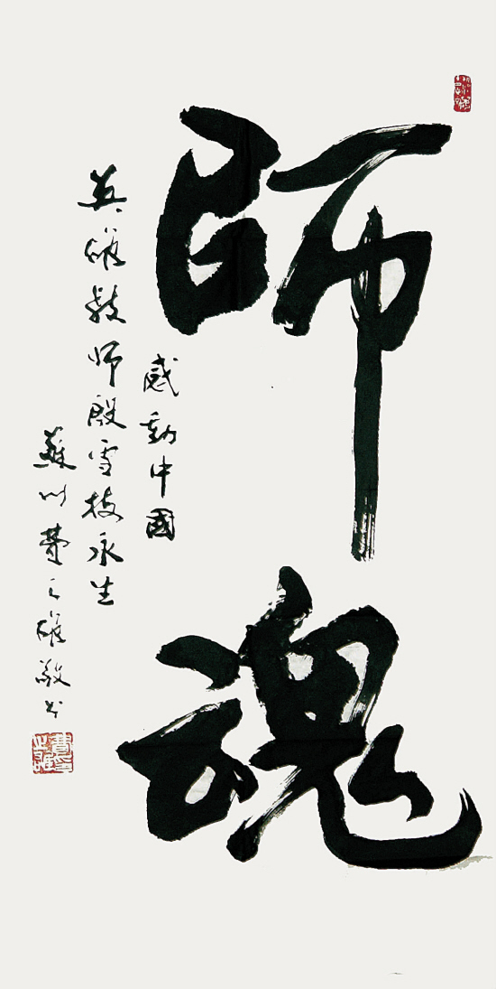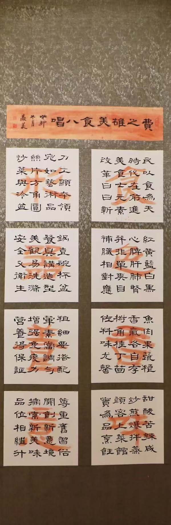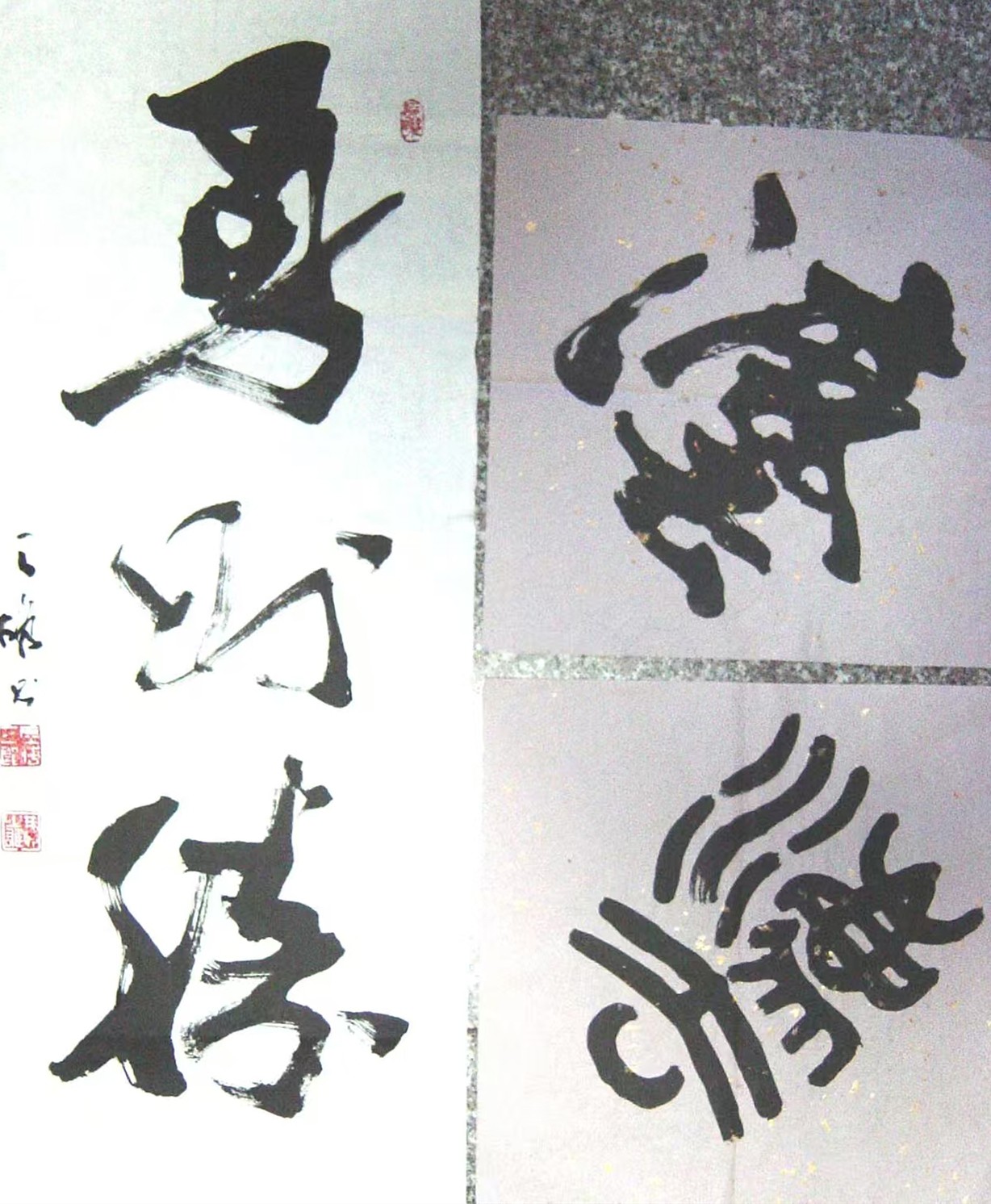 书之雄”,书写内容,笔划线条,结构造型,章法气势”,乃书法作品四大要素。尤其注重自撰书写内容。在形式上,他大胆创新,突破传统书法展览的单一模式。自创五十套系列书法作品,涵盖了篆、隶、楷、行、草等各种书体,各类幅式齐全,色采材质各异,尽力使作品满足多方感官的需求。充分发挥审美、教育、认识、娱乐的四大功能。内容时代化,形式团队化。让作品显得丰满充实, 具创作意味, 富时代气息和团队精神!才能满足群众日益增长的文化和审美需求。这种创新的展览形式在苏沪浙闽鲁等地展出时,引起了轰动,各界纷纷撰文评价“书法盛宴,古今尚无”“为古老书法艺术的发展提供了一条新思路”,充分肯定了他在书法创新方面的卓越贡献。