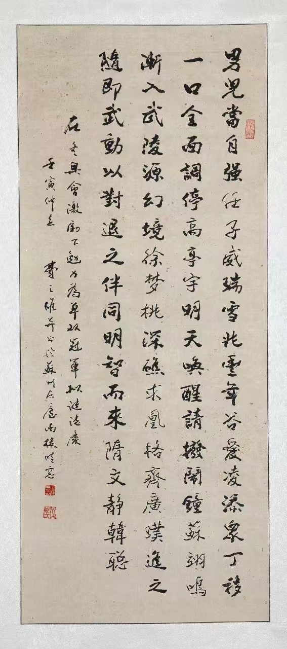 此后,费之雄的人生经历丰富多样,他从事过中学语文教学、书法教学、美术设计、企业管理等工作。这些看似不同的领域,实则相互关联、相互促进,为他的艺术创作提供了多元的视角和丰富的素材。在中学语文教学和书法教学过程中,他深入研读经典文学作品,对诗词、楹联等传统文化形式有了更深刻的理解和感悟,这为他日后在楹联创作和书法作品中融入文学元素奠定了基础;美术设计工作培养了他的审美能力和创新思维,使他在书法创作中能够巧妙地运用色彩、构图等元素,增强作品的艺术感染力;企业管理经历则锻炼了他的组织协调能力和宏观把控能力,为他策划大型艺术展览和活动提供了宝贵的经验。这些经历如同涓涓细流,汇聚成他艺术创作的源泉,滋养着他的艺术之树不断成长。
