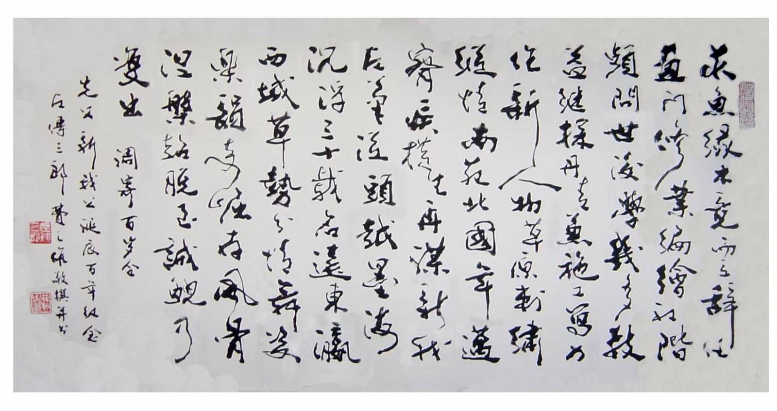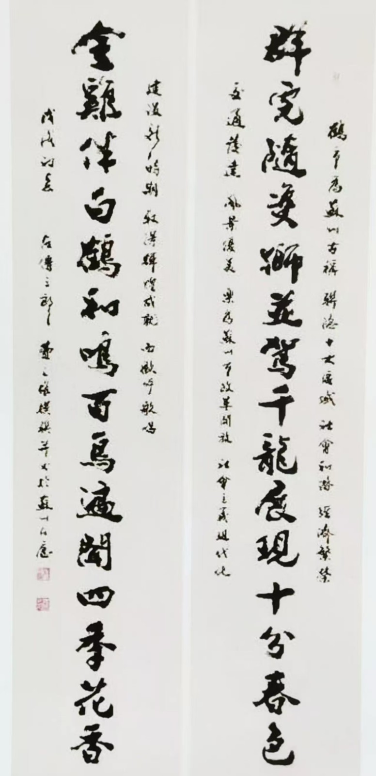 费之雄还通过自己的作品传承和弘扬中华优秀传统文化。他将诗词、曲赋、绘画、篆刻等传统文化元素融入书法、楹联作品中,使观众在欣赏艺术之美的同时,也能感受到中华文化的博大精深。他的作品就像一座桥梁,连接着过去、现在和未来,让传统文化在新时代得以传承和发展。