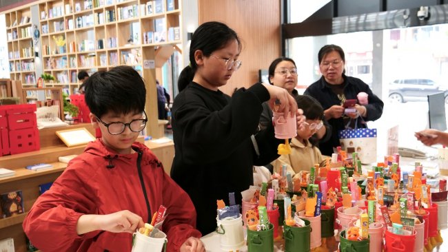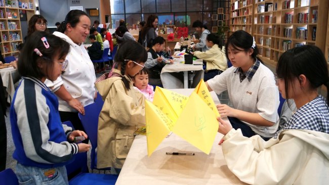 在“春日趣玩”区域,五大互动项目让读者们流连忘返。春日拓印摊位上,读者们将采集来的花瓣、叶片铺在棉布上,用小锤轻轻敲打,植物的汁液与纹理便跃然布上,留下春天的印记;涂鸦风筝区,读者们手持画笔,在空白风筝上尽情描绘心中的春天——燕子、桃花、彩虹,一只只色彩斑斓的风筝即将乘风而起;拼贴诗角,读者们从旧报纸、杂志中剪下词句,重新排列组合,创作出属于自己的春日短诗;东南西北风挑战则是一场趣味互动,读者通过折纸游戏回答与春天相关的诗词、节气问题,寓教于乐;汉字泥塑区,读者们用超轻粘土捏出“春”“花”“雨”等汉字,在动手过程中感受汉字的形体之美与意蕴之深。