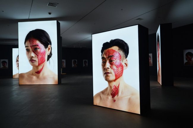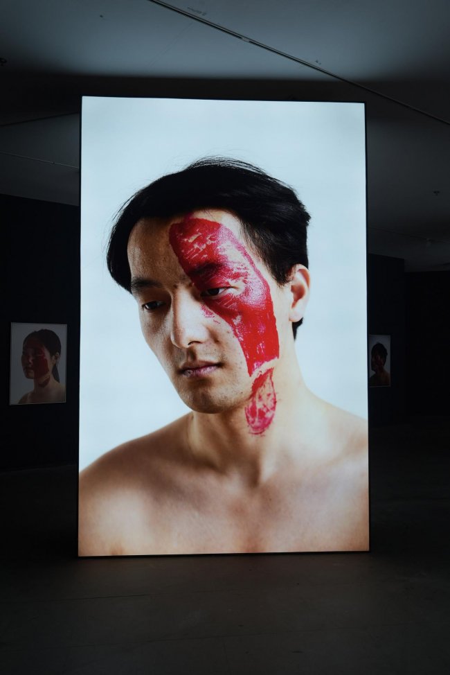 在最终呈现的肖像中,不同鞋印构成了一部微型的人际关系史。“每一张脸庞,都是承载关系的画布;每一个红印,都是情感、权力或记忆的实体烙印。”杨烨炘如此阐释。父母之印或许隐喻着家庭期待的压力,上司之印可能指向职场等级的压迫,而恋人、朋友或网络关系留下的痕迹,则让人联想到情感与社交结构中的摩擦与失衡。……这些鞋印,不仅留在皮肤上,更指向那些无形中塑造我们、伤害我们或定义我们的关系结构。